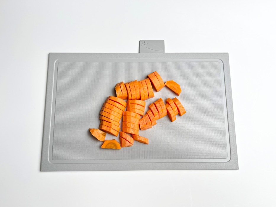 Мы добавляем специи на этапе жарки, так как она лучше раскрывает вкус специй. Если у вас свежий чеснок, его нужно измельчить.