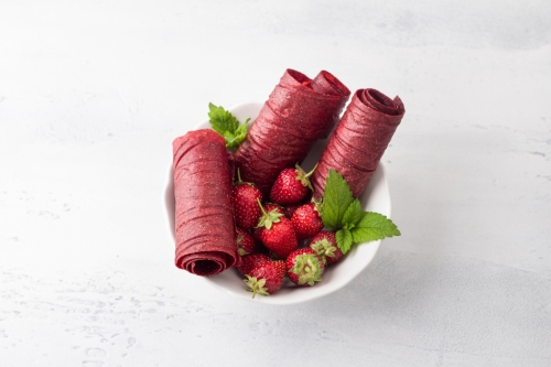 Разрезать пастилу на полоски желаемой длины и ширины и свернуть в рулетик.