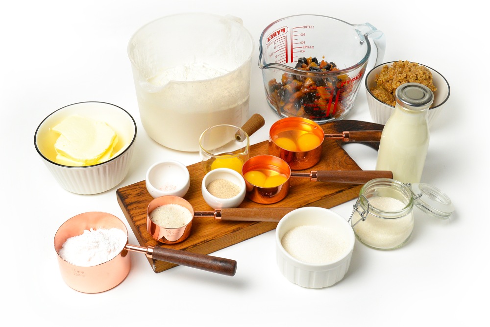 Подготовить ингредиенты для приготовления пасхального кулича «Кранч». Из 600 г муки у меня получается 4 кулича в формочках диаметром 11 см. Разумеется, все продукты можно уменьшить вдвое и сделать лишь 2 кулича.