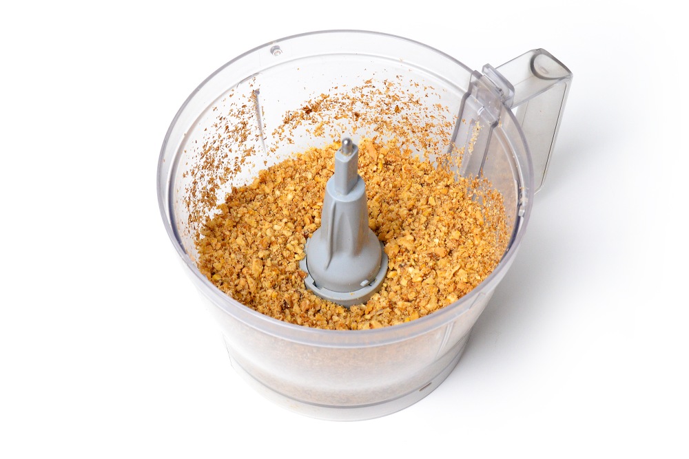 Подготовить начинку из орехов: измельчить грецкие орехи в блендере до крупной крошки.