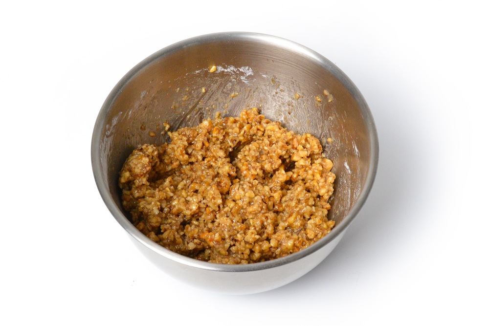 Тщательно перемешать. Ореховая смесь становится густой, похожей на пасту.
