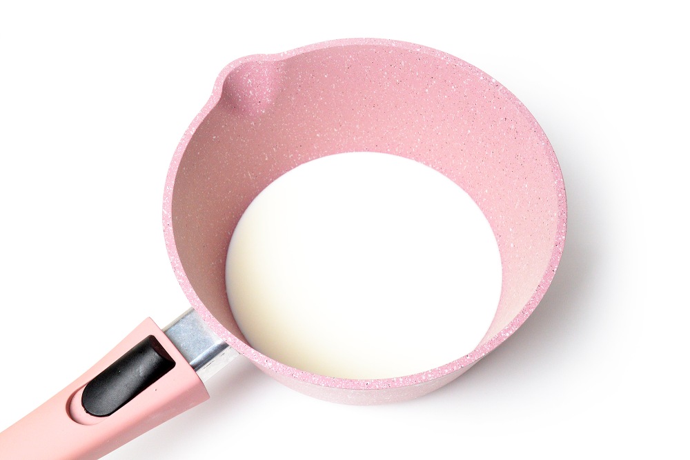Подогреть молоко в сотейнике или небольшой кастрюле до 32-39 градусов.