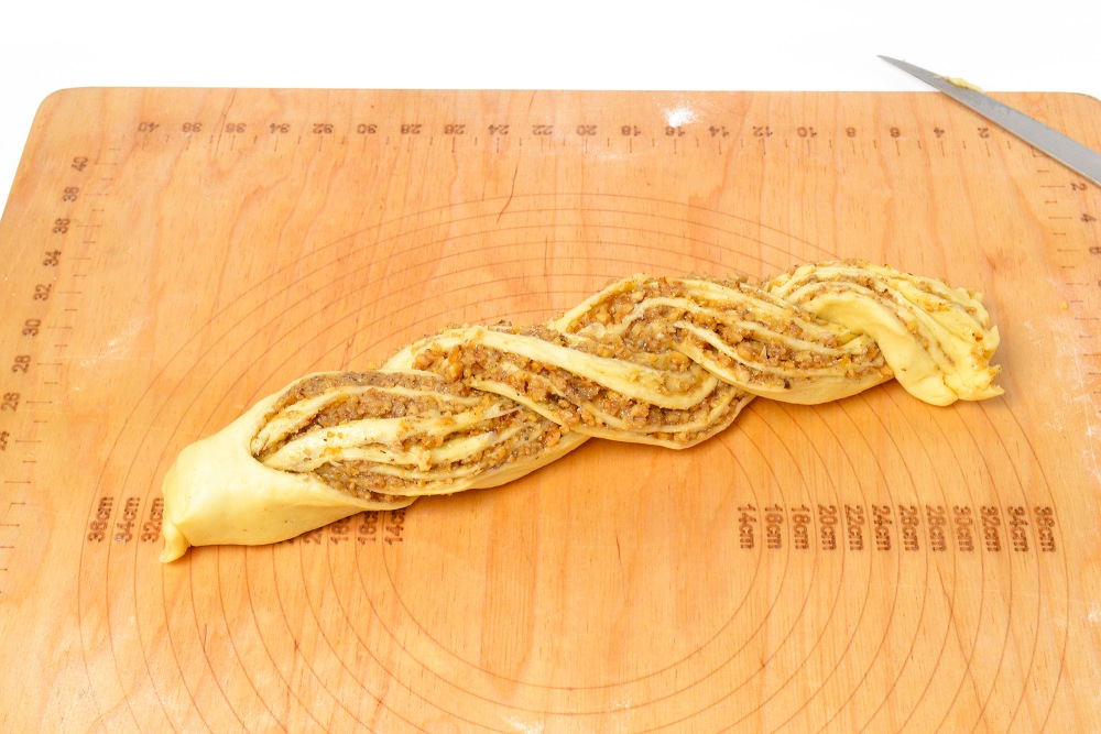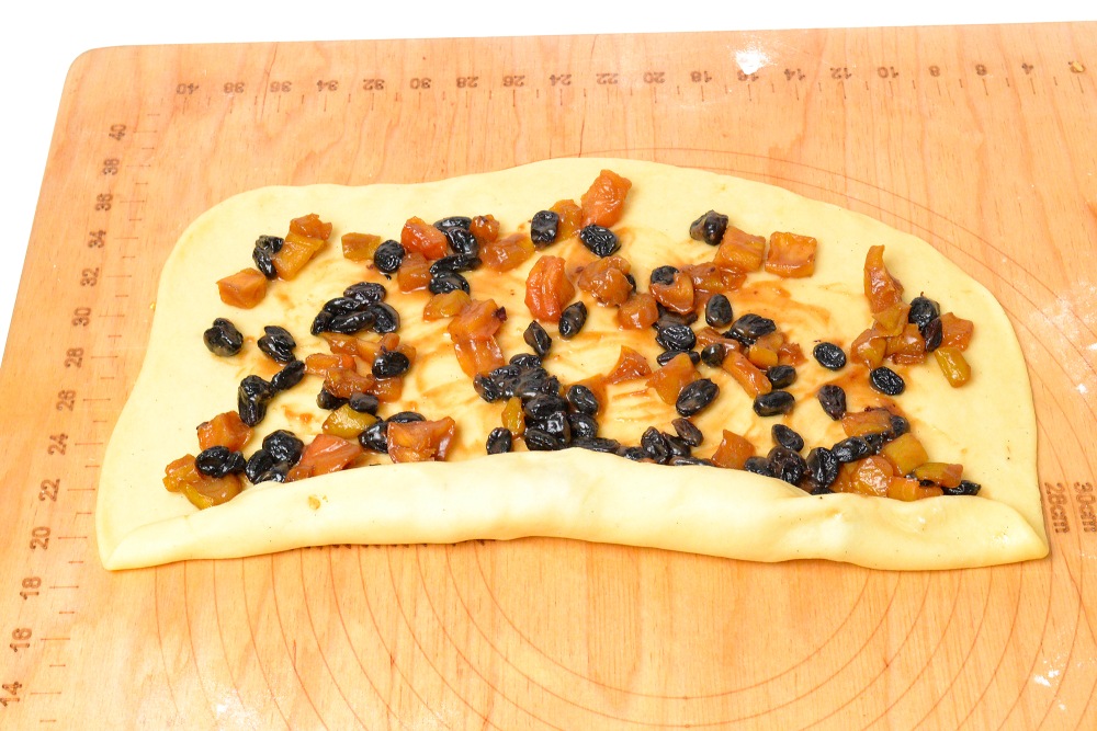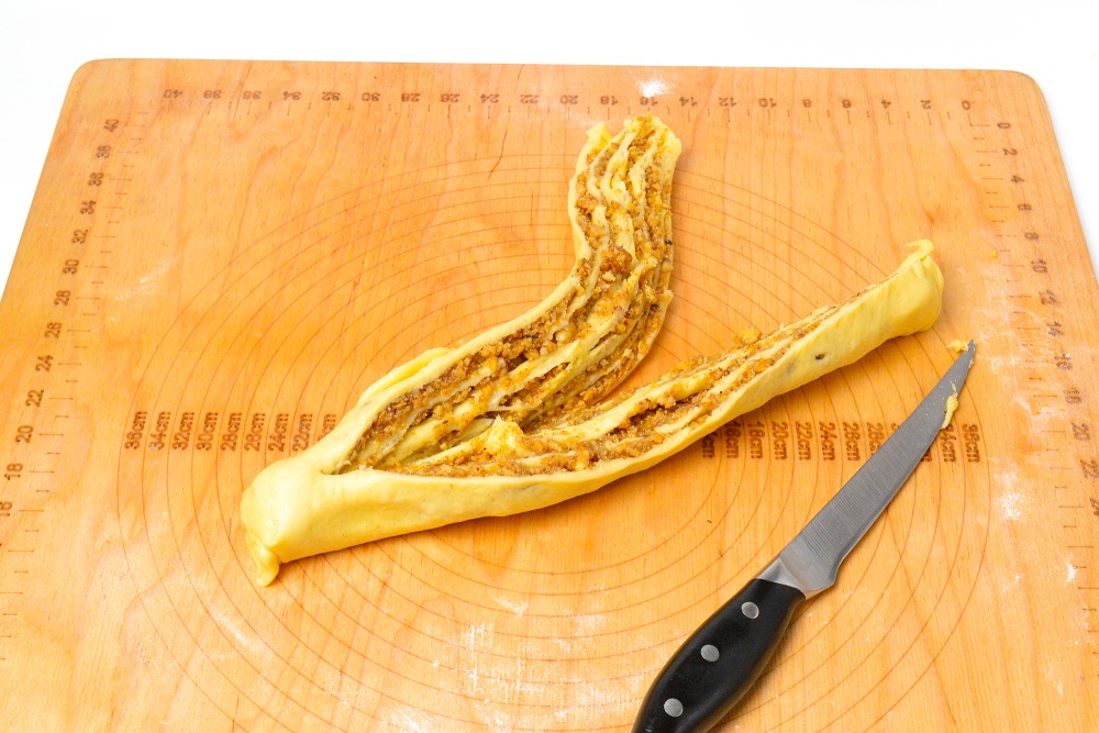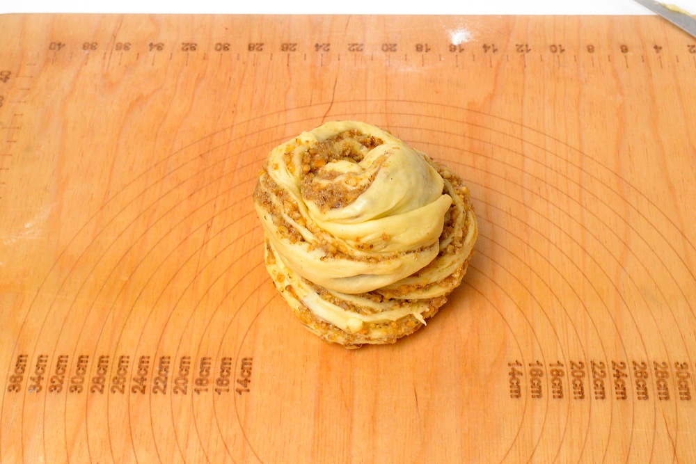 Свернуть в улитку, подгибая концы под кулич, а неразрезанную часть – в центр.