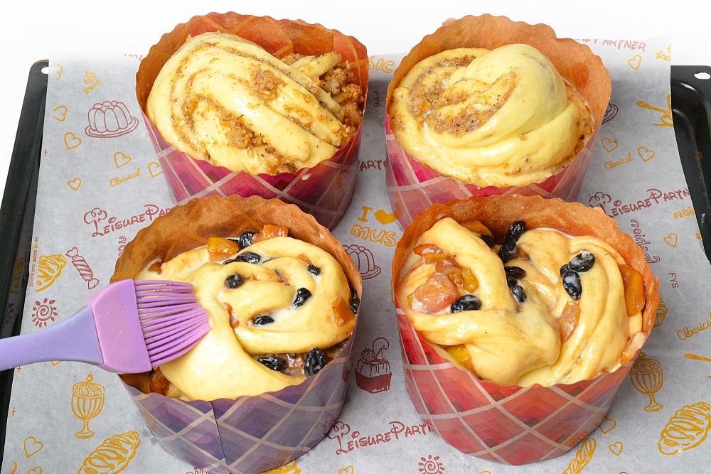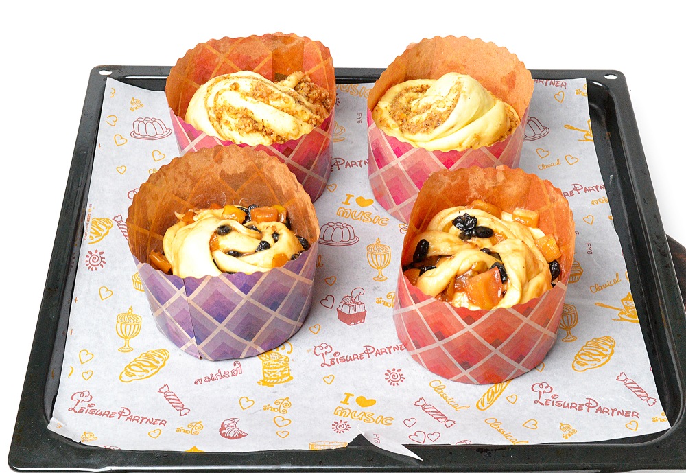 Разложить все «улитки» по формам, смазанным сливочным маслом. Накрыть полотенцем или пакетом и оставить в теплом месте на 30-40 минут.