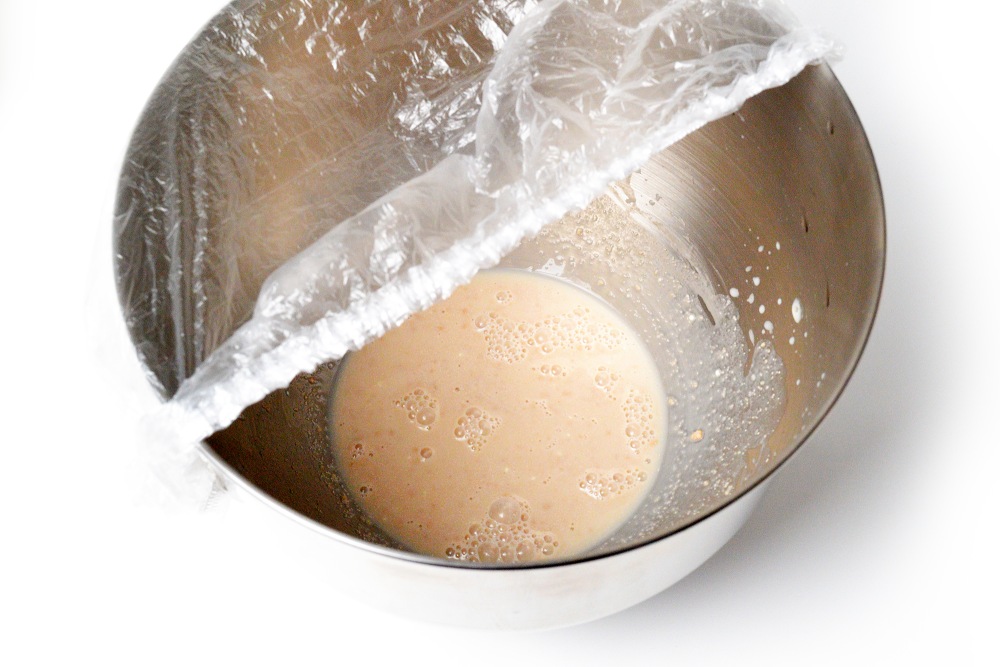 Тщательно перемешать, накрыть и оставить в теплом месте на 15 минут. Таким образом готовится опара. Она улучшает характеристики теста, снижает кислотность и упрощает работу с ним при вымешивании.