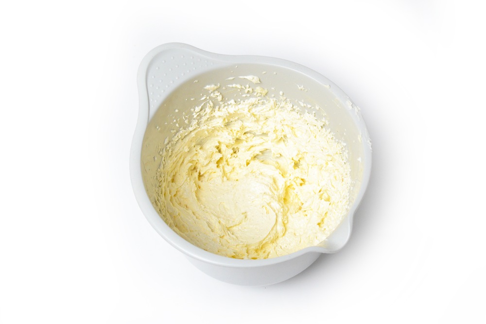 Масло должно стать пышным, более светлым. При перетирании пальцами сахар почти не будет попадаться.