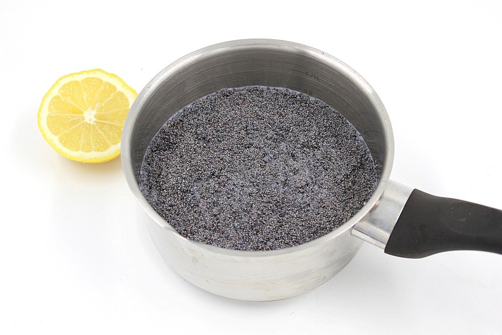 Мак промыть, залить 300 г молока и поставить вариться на пол часа.