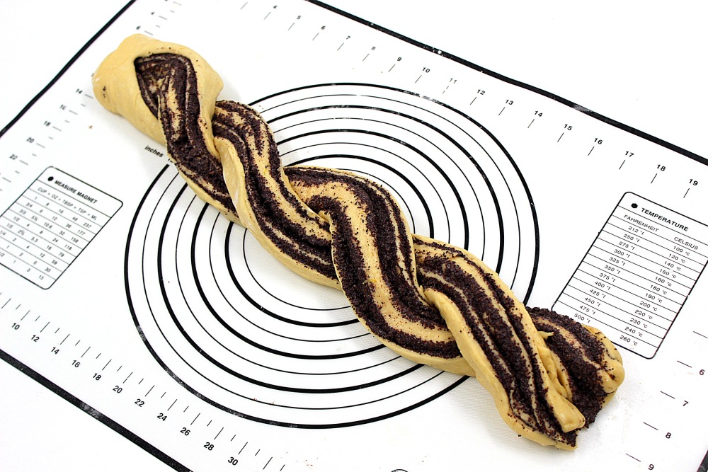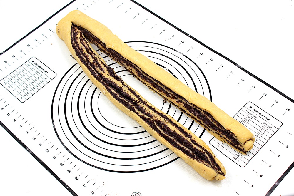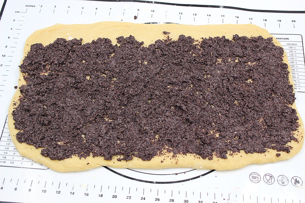Равномерно распределить маковую начинку, не доходя пару см до дальнего края.