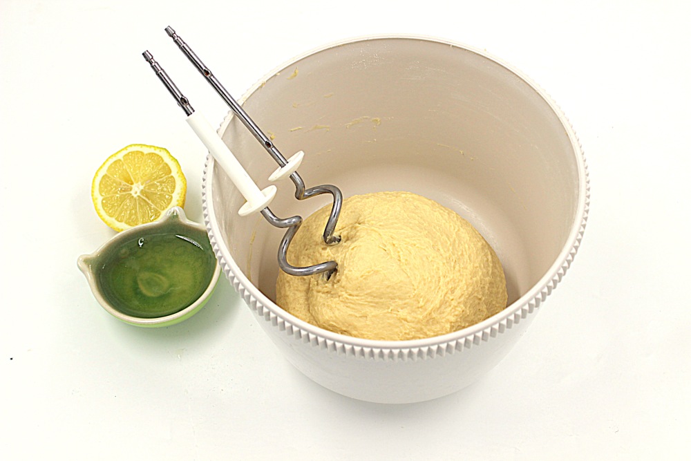 Замешиваю миксером с насадкой крюки. Тесто станет мягким, эластичным, не прилипающим к рукам. Ну разве что сааамую малость.