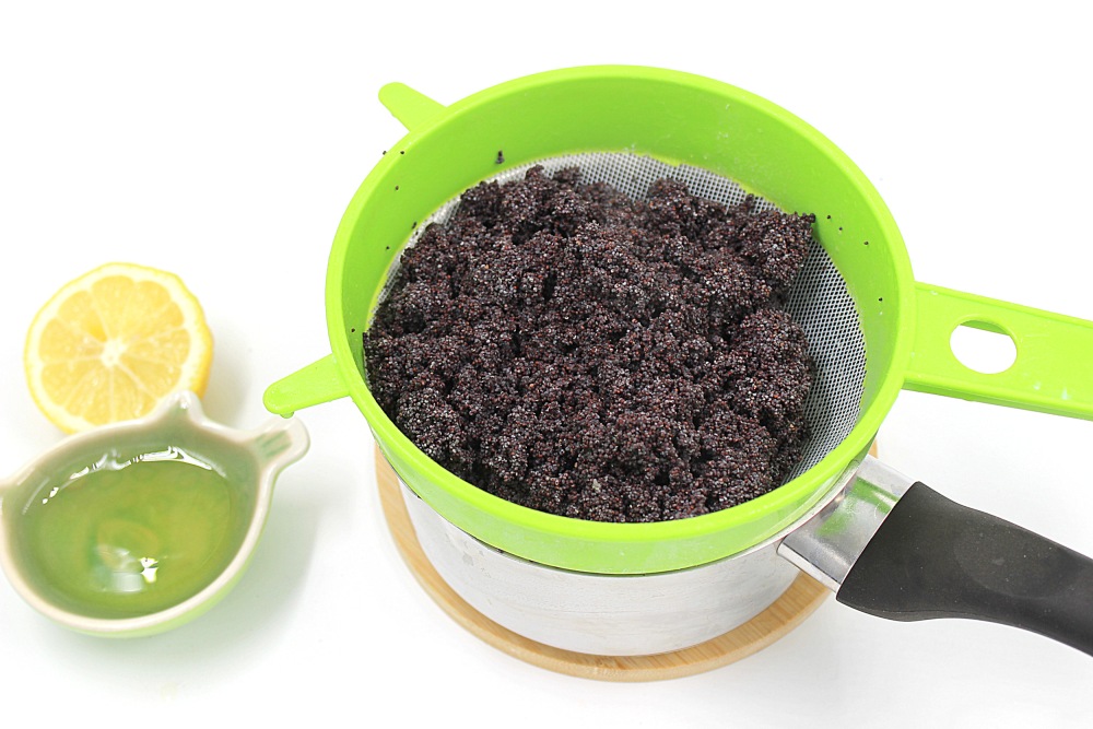 Откинуть мак на сито и промыть холодной водой. Дать хорошенько стечь.