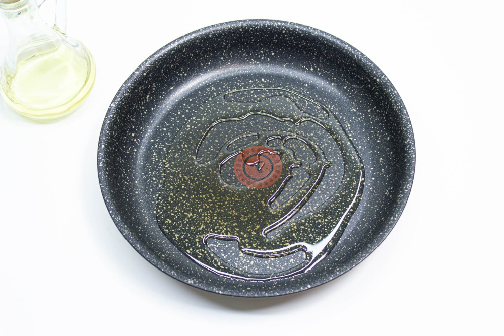 Разогреть сковороду. Поставить сковороду на средний огонь (мощность), добавить растительное масло и хорошо разогреть.