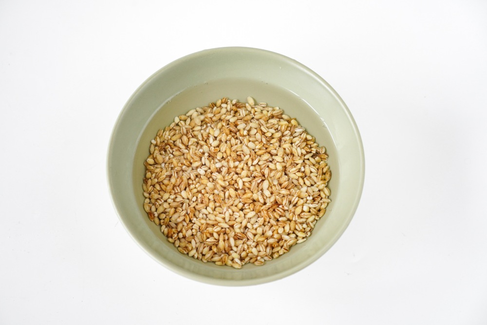 Перловку промыть несколько раз в холодной воде, пока жидкость не станет прозрачной - это поможет избавиться от лишнего крахмала и возможной горечи. Затем залить крупу холодной водой и оставить набухать на 30–40 минут. Благодаря этому она приготовится быстрее.