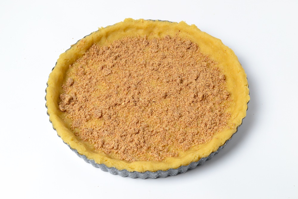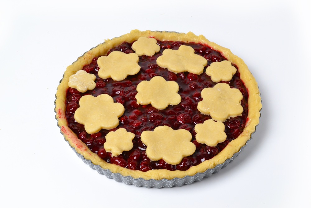 – Можно посыпать пирог тертым тестом вместо формирования узоров формами.