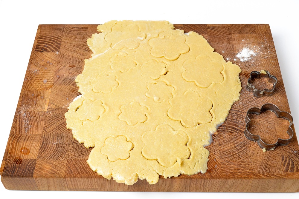 Достать оставшееся тесто, раскатать и сделать формами для печенья украшения.
