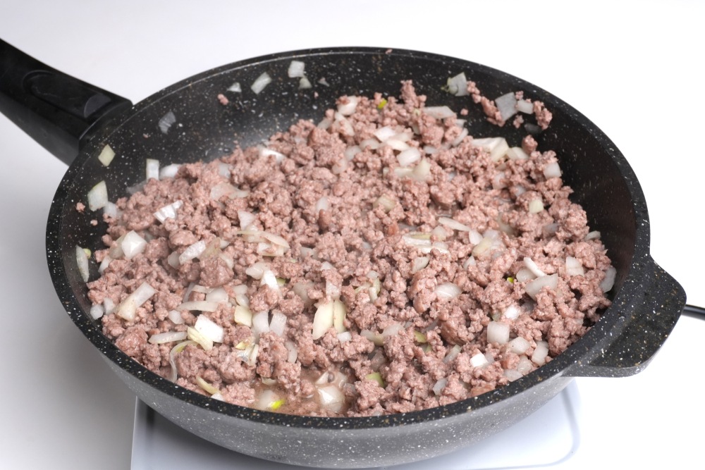 Подготовить все ингредиенты. Продукты для теста нужны комнатной температуры, для начинки фарш должен быть полностью разморожен.