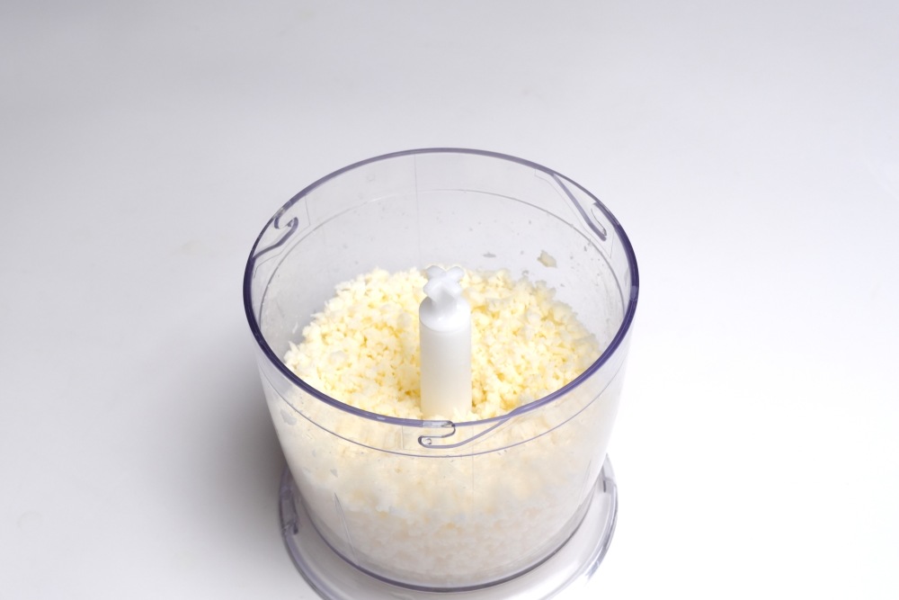 Сыр измельчить. Удобно и быстро это можно сделать с помощью блендера.