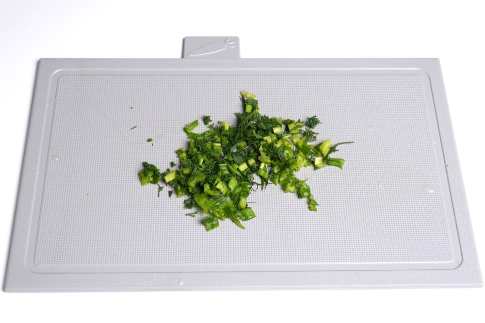 Зелень вымыть и хорошо обсушить, нарезать мелко.