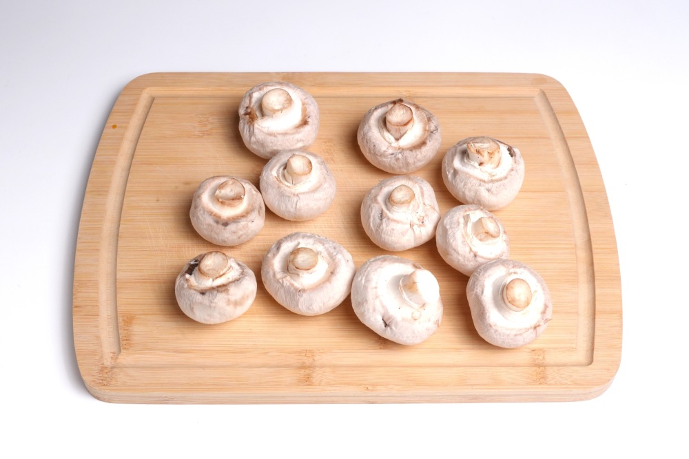 Шампиньоны очистить, убрать загрязнения влажным полотенцем.