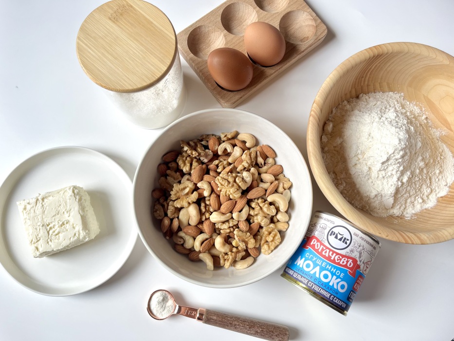 Орехи можно использовать любые. На мой вкус, отлично подойдет грецкий орех, так как в нем есть немного горчинки, что еще лучше будет оттенять сладость сгущенки. Но тут я использовала ореховую смесь (грецкий орех, миндаль и кешью), и тоже получилось замечательно. Поэтому выбор орехов за вами, но мой небольшой совет - обязательно промойте орехи, а затем подсушите в духовке (30-50 градусов 15-20 минут, с приоткрытой дверцей) или на сухой сковороде - это не просто способ очистки, таким образом орехи дадут еще больше аромата и хрусткости.