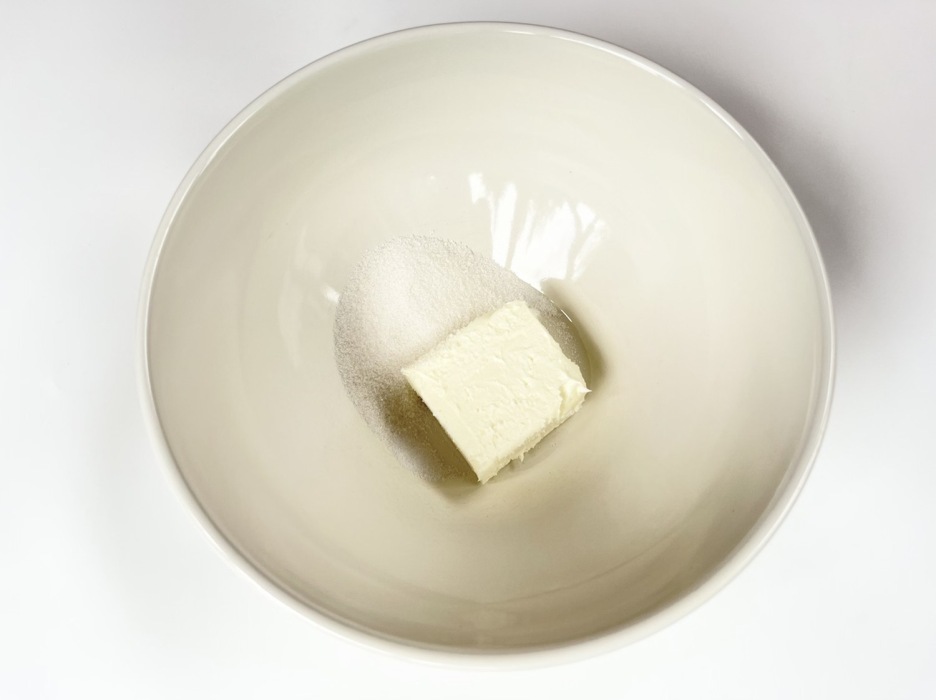Сливочное масло растереть с сахаром и солью. Можно делать это вилкой, можно использовать блендер. Нам необходимо добиться максимально однородной текстуры.
