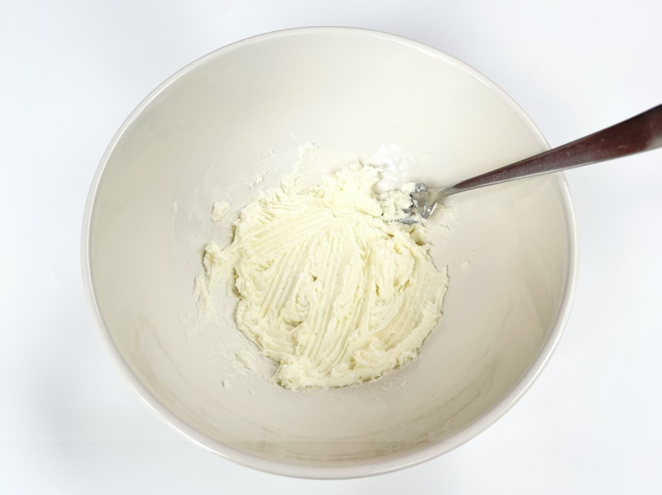 Растереть вилкой или пробить блендером масло с сахаром и солью до однородной текстуры.