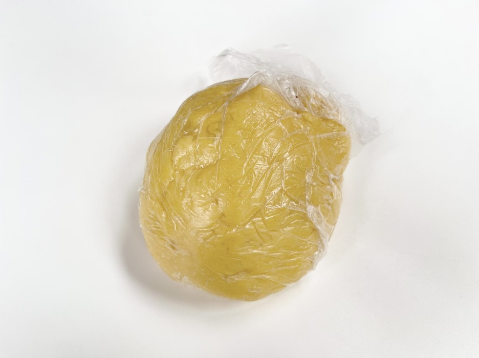 Завернуть тесто в пищевую пленку или пакет и убрать в холодильник на 10-15 минут. Так оно будет более послушным при раскатке и распределении по форме.
