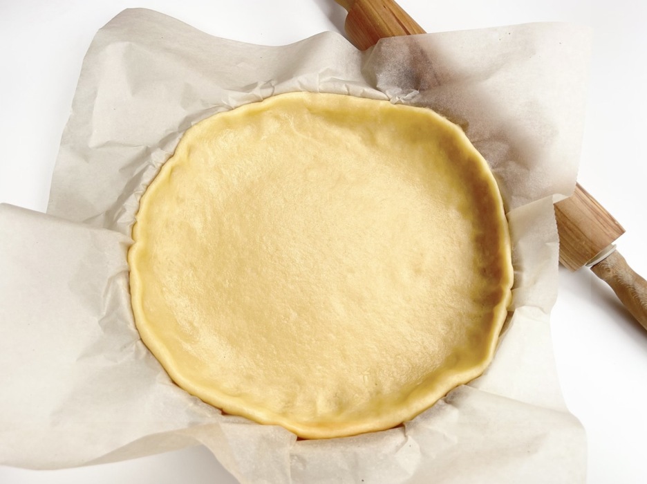 – Чтобы тесто было удобнее распределять по форме, нужно завернуть его в пищевую пленку или пакет и убрать в холодильник на 10-15 минут. Если тесто все равно начинает липнуть при раскатке, можно присыпать мукой поверхность стола и скалку, но тут важно не переборщить с количеством муки, так как тесто может получиться жестким из-за ее избытка. Альтернативный способ – положить тесто между двух листов пергамента и раскатать скалкой.