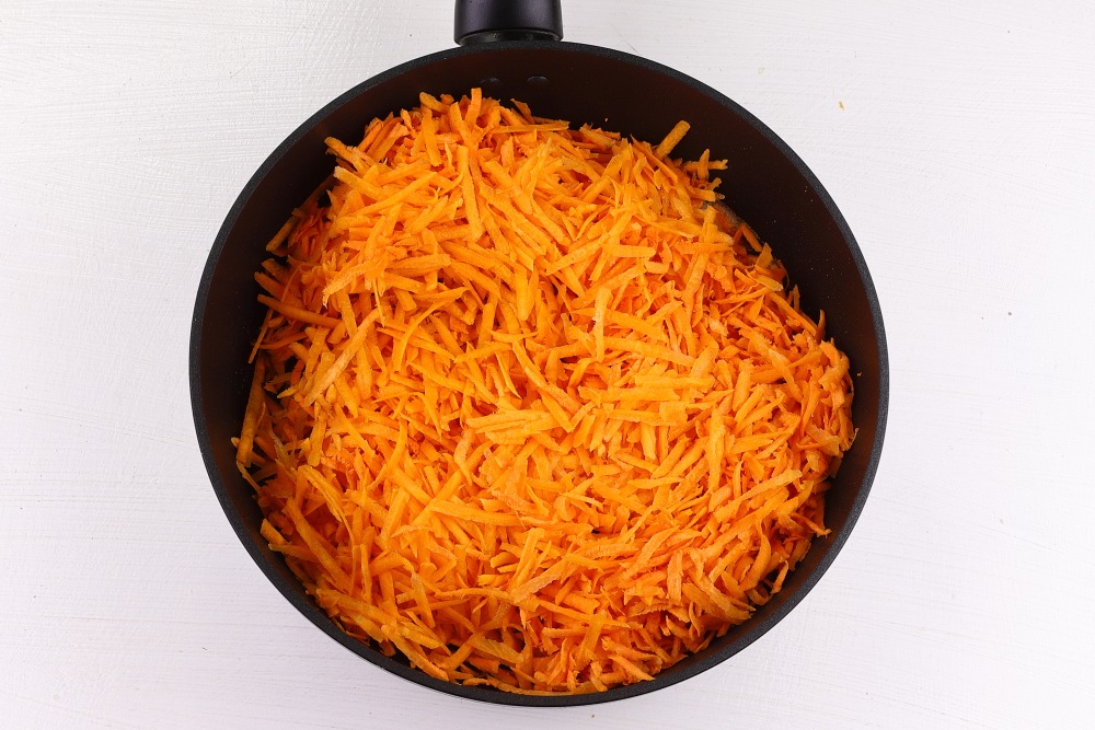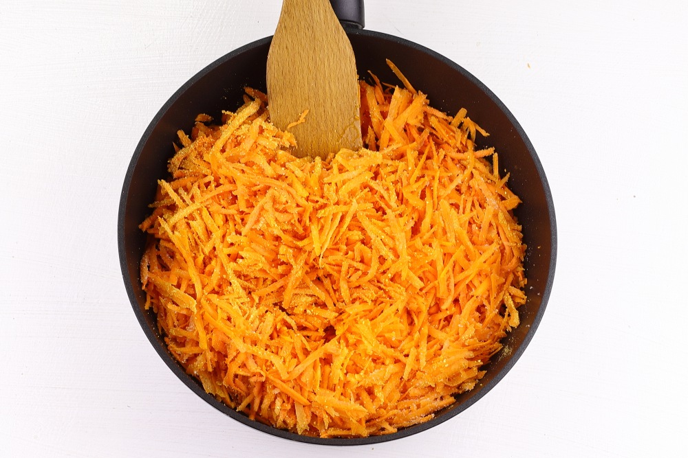 Морковь рекомендую взять сладкую, которая не будет слишком жесткой. Я всегда выбираю молодую, сочную морковь – она быстрее готовится и обладает более сладким вкусом. Такая морковь после термической обработки становится мягкой и нежной, идеально подходит для начинки. Если же вы используете морковь более старую, то натрите ее на мелкой терке, чтобы она быстрее приготовилась и стала мягкой.
