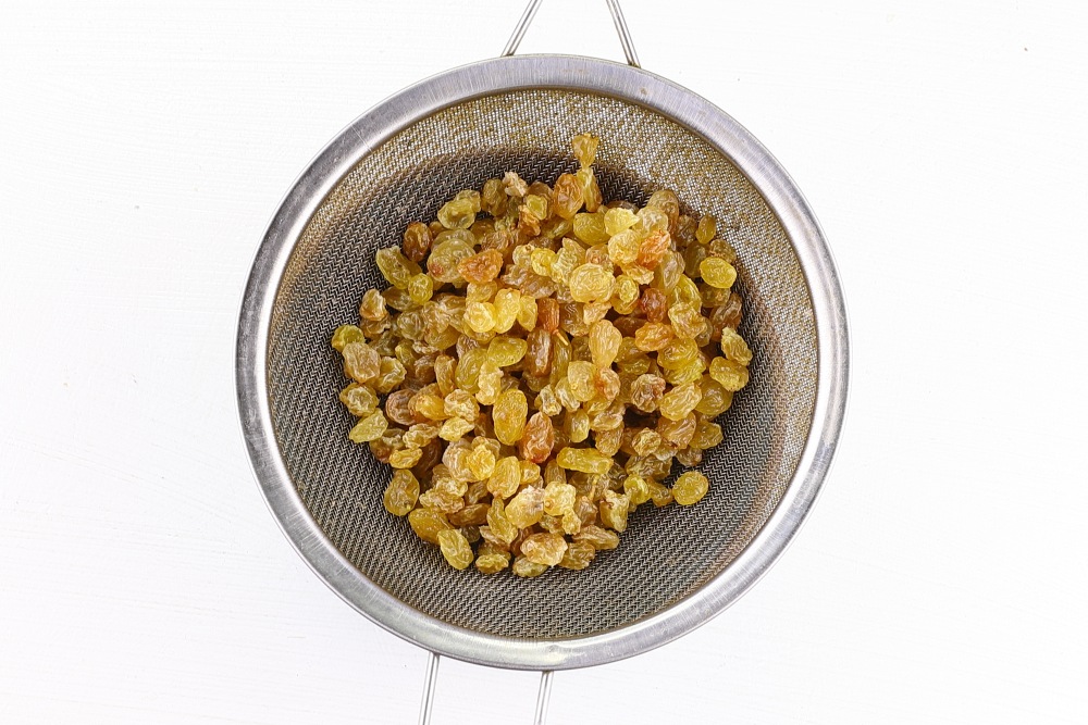 Откинуть промытый изюм на сито, чтобы вся лишняя жидкость стекла.