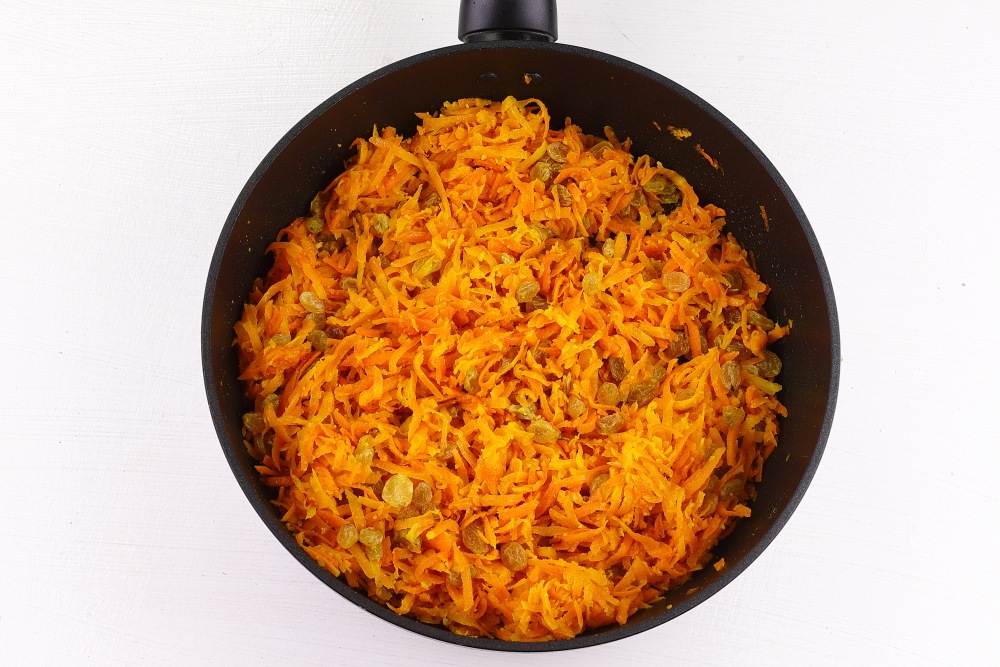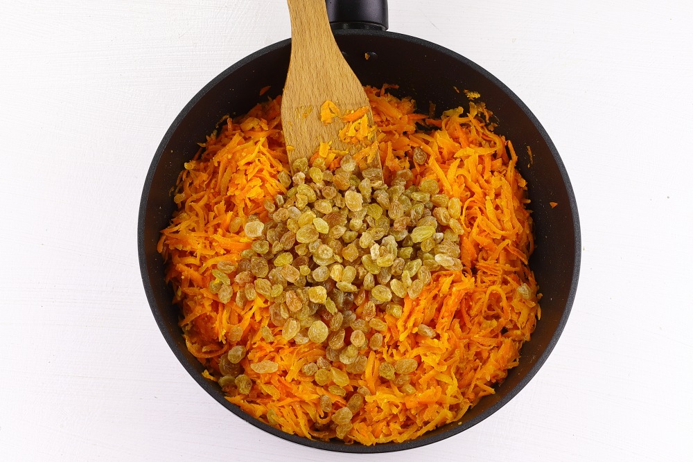 – Чтобы вкус начинки стал еще более ярким, можно добавить в морковь немного корицы или мускатного ореха – эти специи отлично гармонируют с морковью и изюмом.