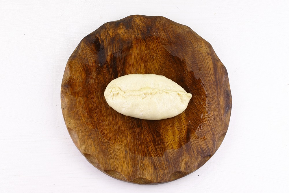 Приподнять края и плотно их защипнуть. Сформировать пирожок.