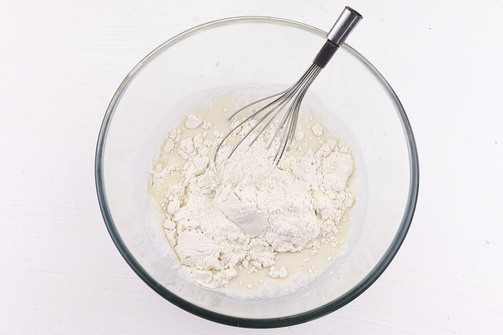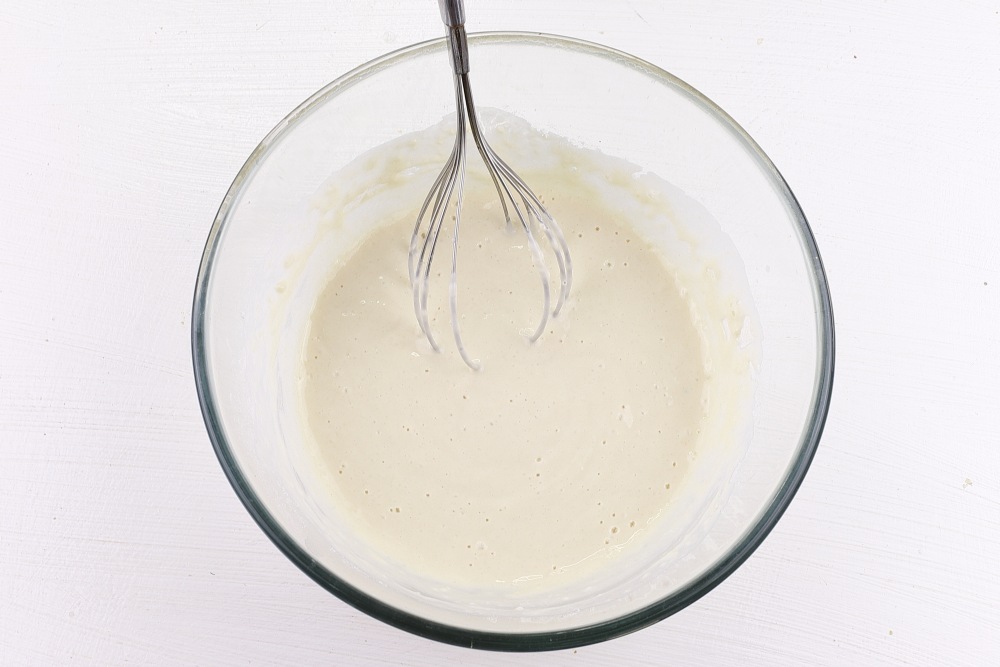 Хорошо перемешать венчиком, чтобы все мучные комочки разошлись.