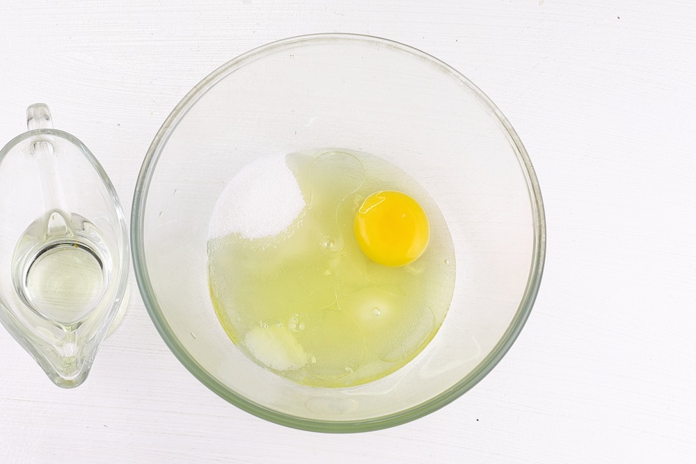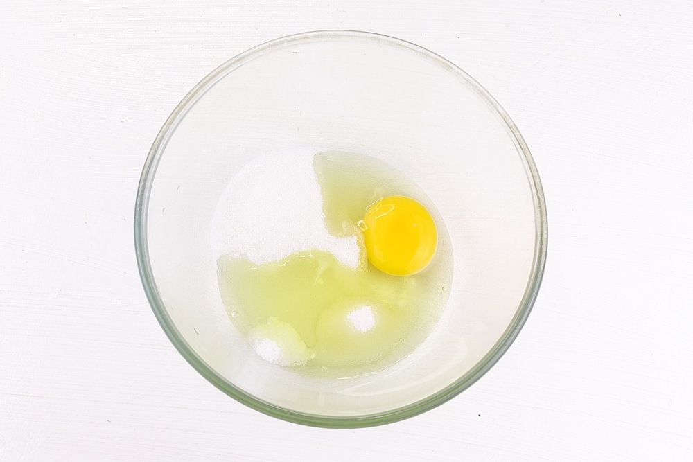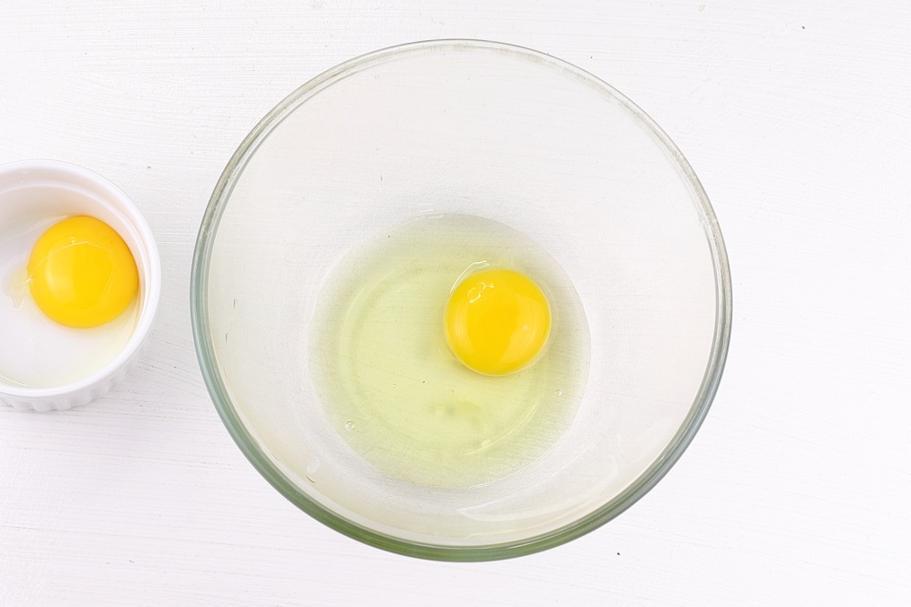 В другую глубокую миску добавить целое яйцо и белок. Один желток оставить для смазывания.