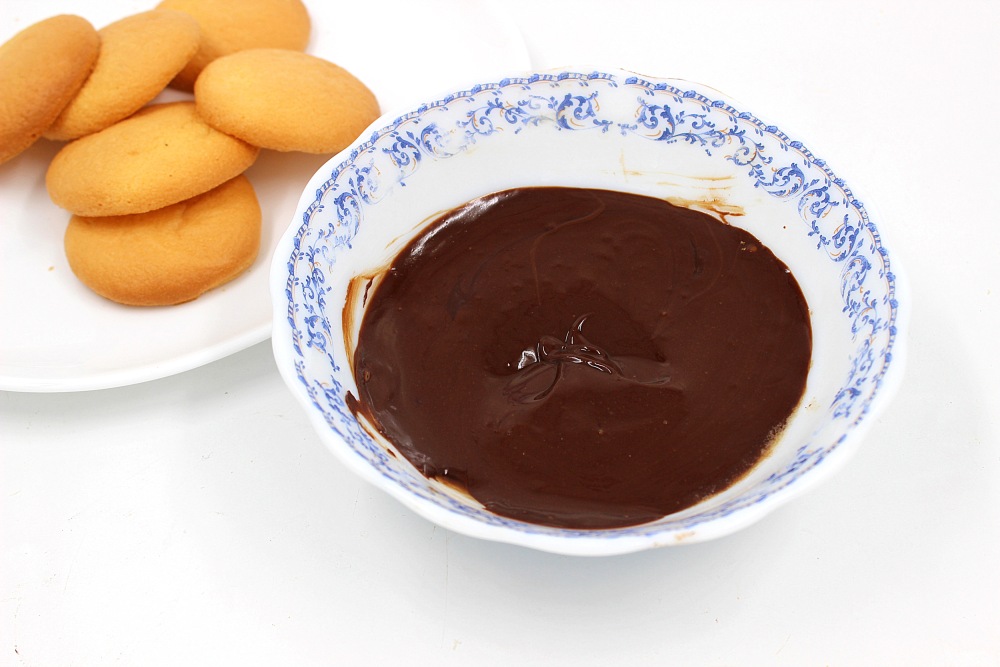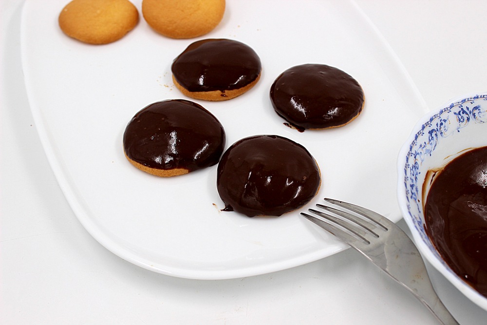Аккуратно перевернуть и дать шоколаду остыть. Глазировать ровно половину бисквитов.