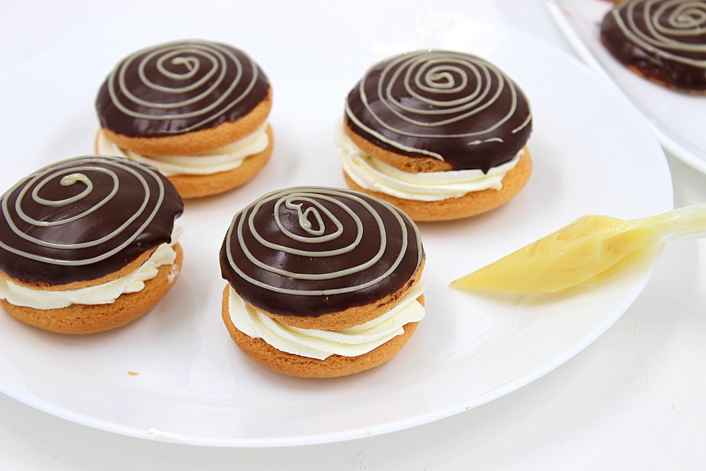 Поставить в холодильник хотя бы на 3-4 часа, а лучше на ночь. За это время крем стабилизируется, а вкус станет более насыщенным. После этого пирожные буше в домашних условиях готовы! Этакие мини тортики или сладкие сэндвичи.
