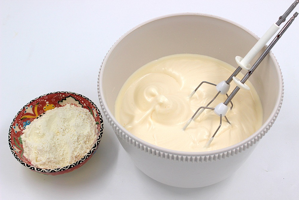 - Для лучшего результата при приготовлении бисквита желтки и белки взбиваются отдельно. Это даёт более стабильный результат. Если пойдёте по этому пути, то надо до бела взбить желтки и отдельно, до пиков белки. Соединить обе массы, слегка перемешать, добавить муку и уже окончательно смешать тесто. 2/3 сахара добавляются в желтки при взбивании, а треть в белки.
