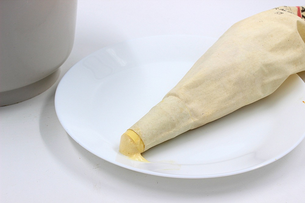 Держать мешок довольно близко к противню. Стараться не оставлять хвостик.