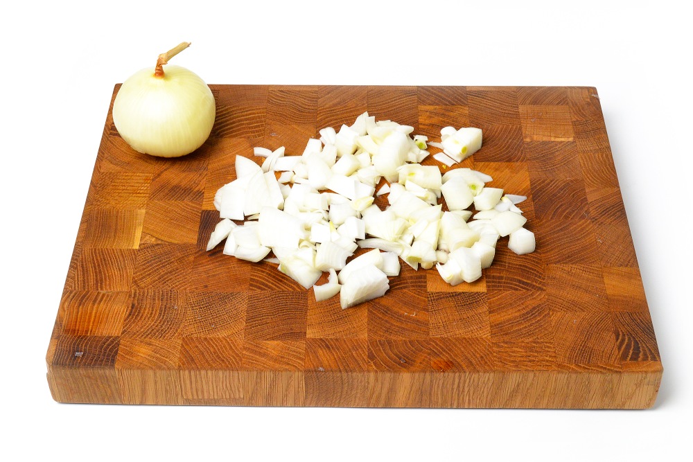 Нарезать лук.