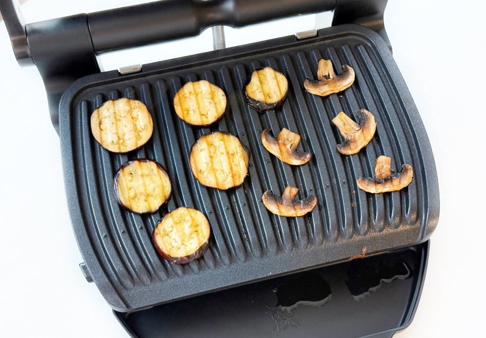 - Также важно правильно нарезать овощи. Не стоит делать их слишком тонкими, они будут предварительно обжариваться на гриле для выпаривания лишней влаги. Оптимально баклажаны 0,7 см -1 см, шампиньоны 0,5- 0,7 мм.