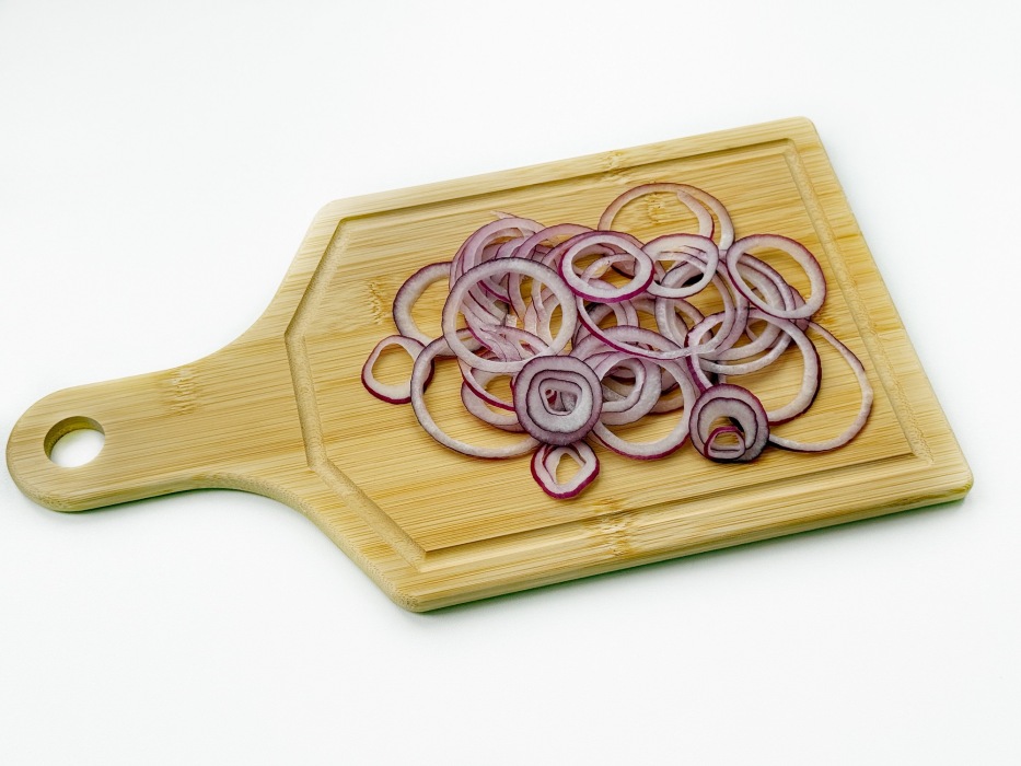Лук нарезать кольцами.
