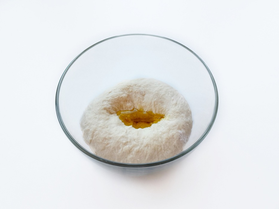 Добавить оливковое масло и снова хорошо вымесить.