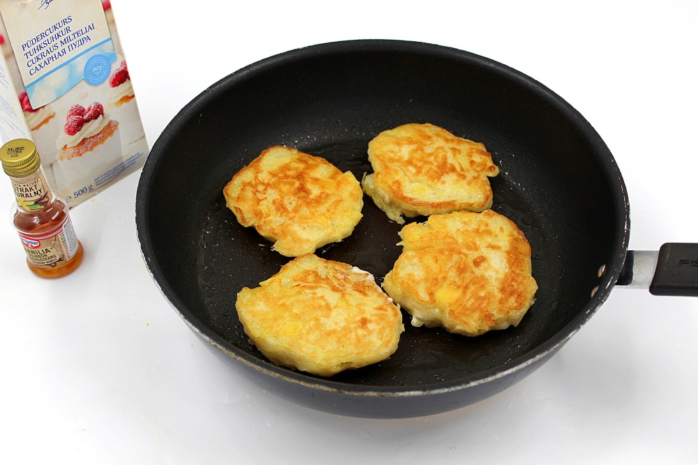 По желанию оладьи присыпать сахарной пудрой.