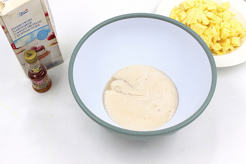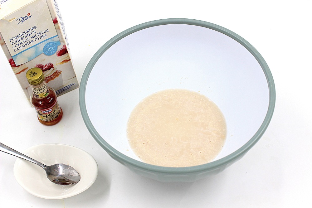 В миске с дрожжами появится этакая шапочка из мелких пузырьков. Дрожжи активировались.