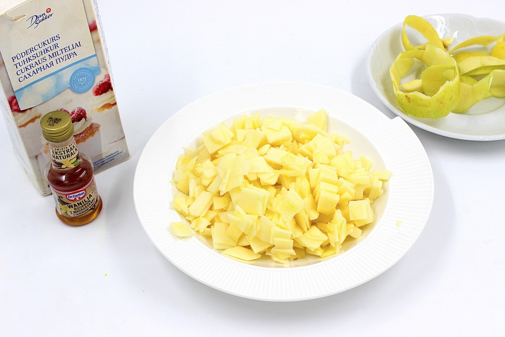 За это время очистить и мелко нарезать яблоки.