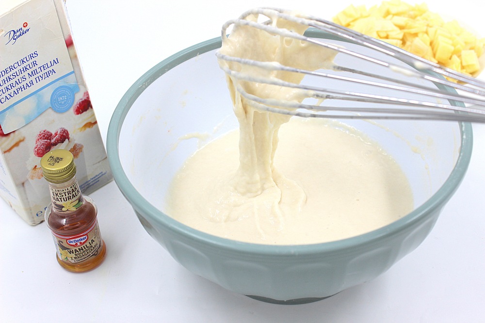 Тщательно перемешать. Тесто должно быть густым, медленно сползать с венчика.