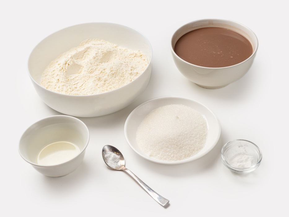 Подготовить продукты для постных вафель в электровафельнице: муку просеять, овсяное молоко предварительно достать из холодильника. Я использую шоколадное овсяное молоко, можете взять классическое или любое другое растительное.