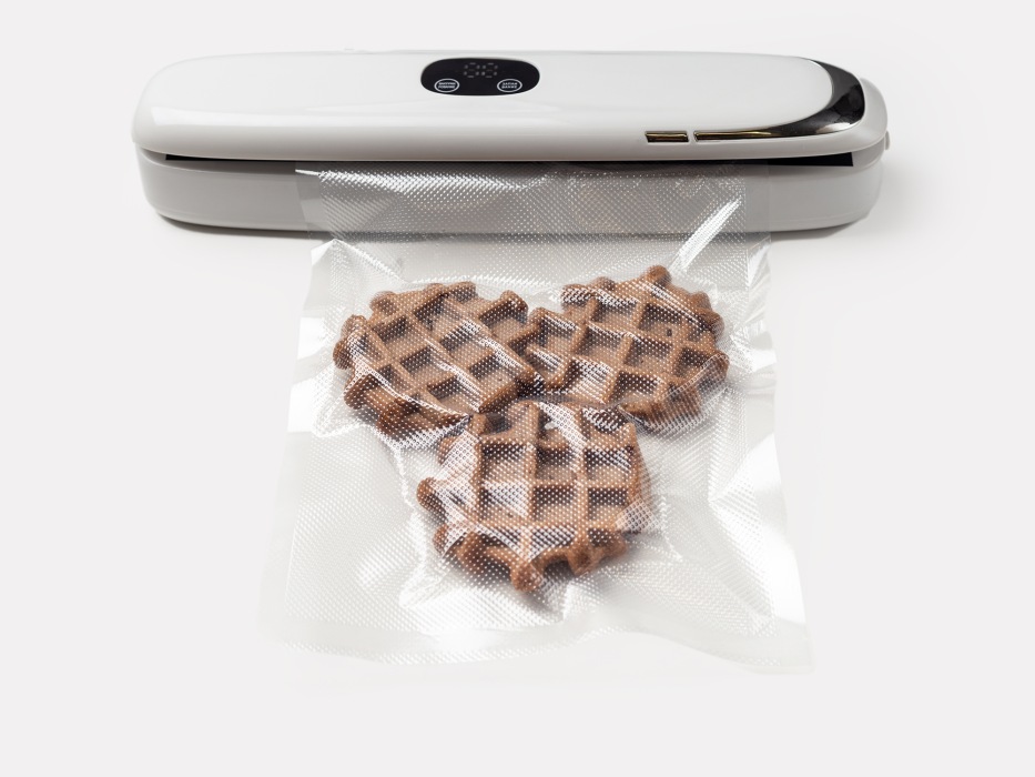 Выложить вафли в контейнер заморозить в морозилке. Переложить вафли в пакет, с помощью вакууматора удалить воздух, запечатать пакет и заморозить в морозилке.