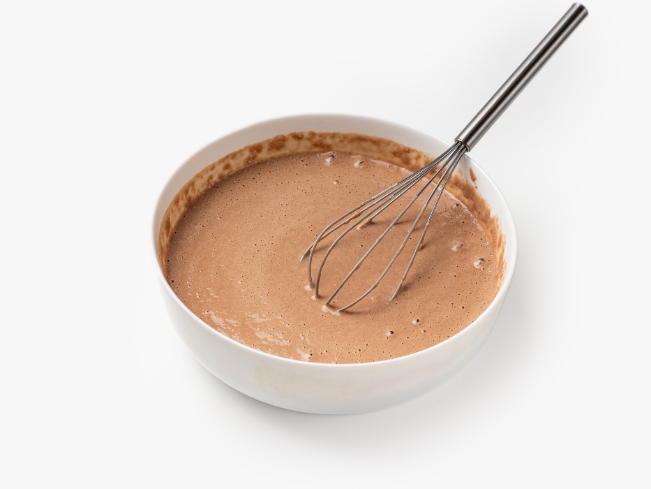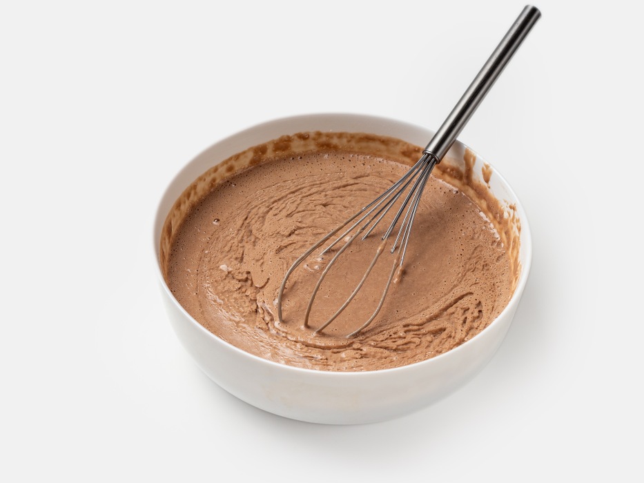 - Смешайте сухие ингредиенты в одной миске, затем просто влейте жидкие — венчиком до однородности без комков, 2 минуты максимум.