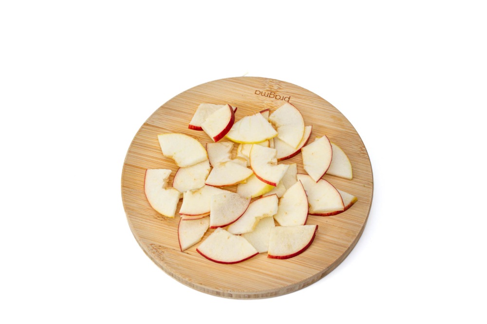 Яблоко промыть и обсушить полотенцем. Разрезать пополам и удалить сердцевину.