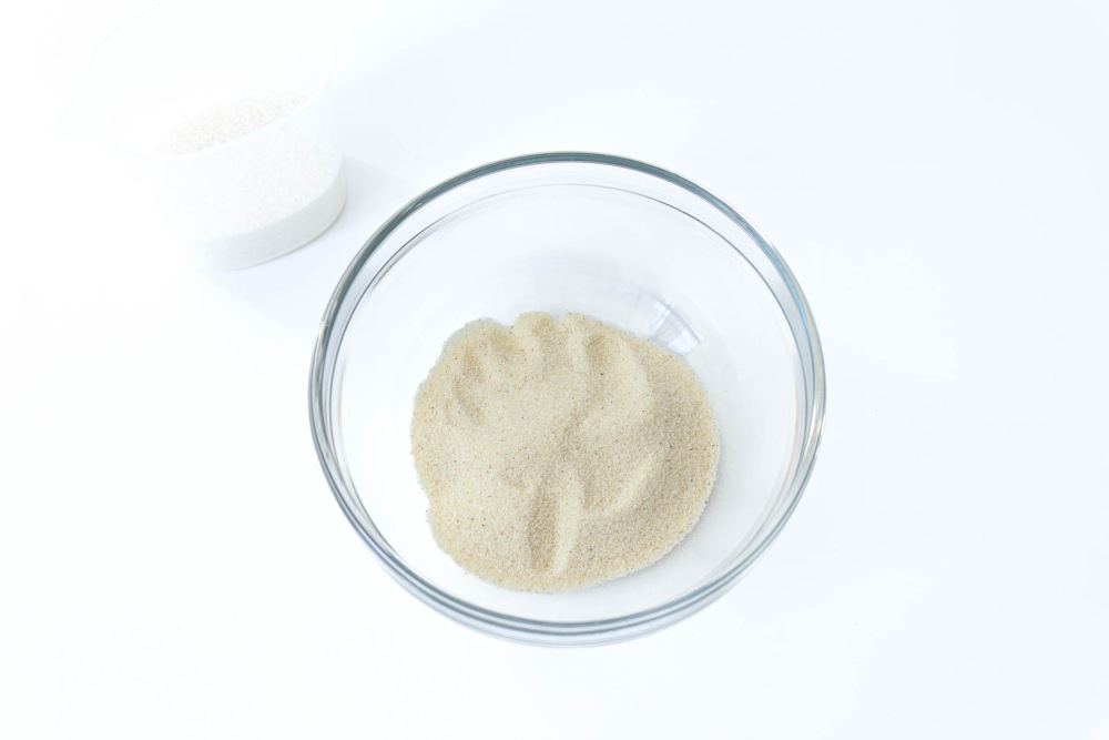 Залить манку с сахаром водой и оставить набухать примерно на 20 минут.